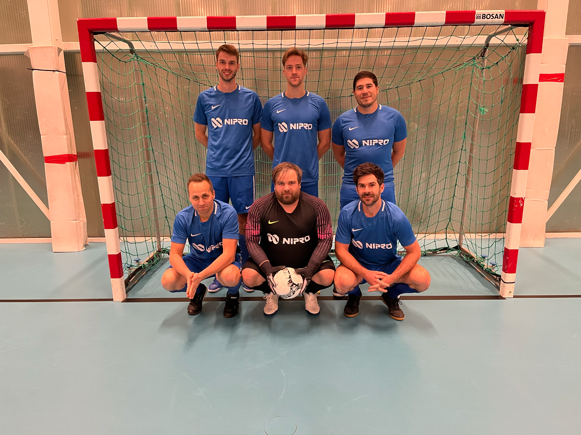Tweede wedstrijd van de avond speelde zich af tussen November Five (met veel spelers) en Nipro Medical. De aftrap werd gegeven en het werd in eerste instantie een op-en-neer voetbal zonder echt uitgesproken kansen. Plots vond Nipro het welletjes en een steekpas van Andres Morales op Sebastien Gabriel die Philip Peeters bediende aan de tweede paal bracht soelaas, want die kon bijna niks anders meer dan de bal in doel tikken: 0-1 (11'min). Op een paar tellen stond het dan ook plots 0-3 via Wouter Verschueren (tweemaal): eerst na een leuke bal van Kim Claes, de volgende een pass van Philip Peeters. We gingen rusten met 0-3. Op de dertigste minuut was daar weer Philip Peeters na samenspel met Wouter Verschueren: 0-4. Twee min. later gerommel voor doel van Aquafin die de bal niet wegkregen en opportunist Sébastien Gabriel die tussen een bos van benen het gaatje wel vond: 0-5. Drie minuten later een solo van Wouter Verschueren die besloot in de winkelhaak: 0-6. Nadien nog een pirouette van Philip Peeters die zo de keeper misleidde en het stond 0-7. Aquafin dan met zijn allen naar voren, maar konden niet besluiten. Aan de overkant verscheen plots Kim Claes met een geplaatste bal: 0-8. Na een bizarre situatie nog samenspel tussen Kim Claes die Philip Peeters bedient en de stand werd op 0-9 gebracht. Toch kwam November regelmatig naar voren, maar konden ze de kansen niet afmaken of was er de bezoekende doelman die hen van de goals afhield tot drie minuten voor tijd wanneer Geert Wille na misverstand bij de Atlas Copcoverdediging de eer kon redden; 1-9. Amper één minuut later viel er echter na mooi samen-spel weer een doelpunt aan de overzijde: Philip Peeters de boeman tikte weer binnen voor Atlas Copco: 1-10. In de laatste minuut wanneer Wouter Verschueren weer een pass in de voeten van Kim Claes speelt en die laat de kans niet onbenut: 1-11. De meeste neutrale supporters zagen een aangename wedstrijd waarbij voor Nipro Medical zowat elke kans erin ging en waarbij November Five de pineut was en geen goal kon binnentrappen niettegenstaande de grote mogelijkheden. Hopelijk staan de volgende keer hun kanonnen wel goed afgesteld!