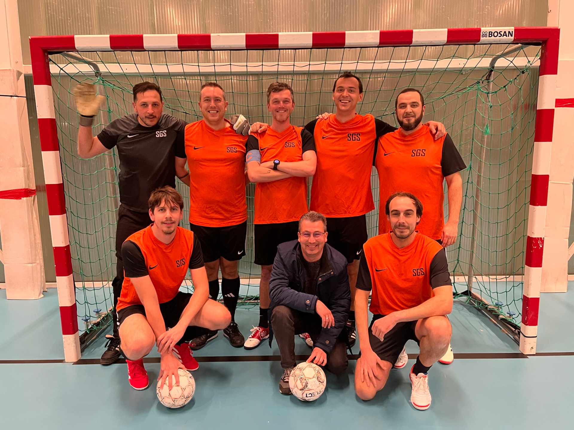 AQUAFIN – SGS was weer zo'n heerlijke wedstrijd voor de neutrale toeschouwer met vlug aanvallend futsal langs beide zijden. Het leek er dan ook lange tijd op aan te komen of we wel een winnaar zouden gaan kennen… Toch kende de opening van de wedstrijd voor SGS een heel zwart moment: een slechte uittrap van de keeper werd in dank aangenomen door Bram Bogaerts en aldus stond het al in de eerste minuut van de wedstrijd 1-0 voor de thuisploeg! SGS reageerde direct met forse druk en op de 3de minuut was er een strakke pass van Wim Verreth op Kevin Segers, maar de keeper kon de schade beperken. Een atoomschot van Bert Busselen ging rakelings naast en een minuut later waren er mooie kansen in één poging van achtereenvolgens Wim Verreth, Niels Van Der Auwera en Wim Beckers, maar Stijn Chaves Daguilar kon telkens de nul houden! Een steekpass van Wim Verreth op Niels Van Der Auwera kwam net buiten bereik van zijn voet. Aan de overzijde een kans voor Elias Van Loon die alleen voor de keeper kwam, maar Filip Poschet kon de fout van in het begin van de wedstrijd terug rechtzetten met een puike redding. Een knal van Koen Pauwels belandde rakelings naast de verkeerde kant van de doelpaal en even later presteerde hij hetzelfde maar dan aan de andere paal. Niels Van der Auwera omspeelde dan een paar man en vond z'n ploegmaat Kevin Segers, maar diens bal raakte niet door het bos van benen. Een poging van Bert Busselen met tip kon in extremis weer gered worden door Filip Poschet en even later verscheen Koen Pauwels alleen voor keeper Filip die kon verwerken in corner. Ook Stijn Chaves Daguilar liet zich niet onbetuigd en rende voorwaar mee naar voren, waagde zijn kans maar vond een verrassende opponent in de andere goal; zo bleef de stand bij de rust steken op 1-0 voor Aquafin. De appelsientjes hadden blijkbaar deugd gedaan want na twee minuten kwam daar als een duivel uit een doosje weer de keeper van Aquafin naar voren en spatte zijn schot op de paal buiten. Het zou nog een paar keer gebeuren en zo speelde Aquafin in feite met overtal ten opzichte van SGS, die zich ook van hun beste kant lieten zien met pogingen van Wim Verreth en Wim Beckers. Dan volgde een lichte druk van Aquafin met een bal die onderschept wordt door Elias Van Loon, maar de keeper nog kon redden. Een knal van Wim Verreth vanop links gaat naast de kruising en Niels Van der Auwera kopt vlak voor doel naast. Het kan keren want op corner van Bram Bogaerts kan Thomas Reyntiens de 2-0 binnenknallen (36'). De reactie nadien liet niet lang op zich wachten, want bij een poging van Elias Vermeiren dacht iedereen die zit erin, maar de bal bevond zich onder de keeper. Een verraderlijke bal van Wim Verreth kan de keeper nog in corner verwerken. Even later Wim Verreth naar Niels Van der Auwera over de keep, maar die kan alsnog de bal beroeren die tergend traag tegen de paal belandt en zo buiten… Een combinatie Rigo Van Rompaey naar Elias Van Loon doet Aquafin verder uitlopen in de 21' naar 3-0. Doch een minuut later de verdiende aansluitingstreffer voor SGS waarbij Wim Beckers naar Kevin Segers kan passen die mooi afwerkt: 3-1. Het eindslot van Aquafin mocht echter ook gezien worden Bram Bogaerts naar Thomas Reyntiens en terug naar Bram Bogaerts zorgt voor de eindstand: 4-1.