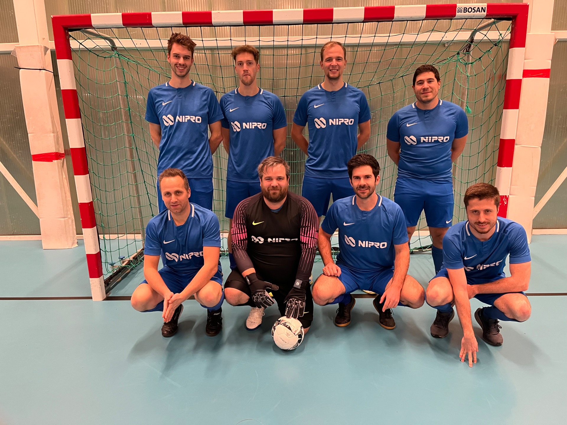 NIPRO MEDICAL EUROPE - ATLAS COPCO was een niveautje hoger en werd gewonnen door Atlas Copco met nipte cijfers: 2-3! Het was lang wachten op de eerste kans en die was voor Atlas Copco bij monde van Pedro Isolani die van heel ver zag dat de keeper uit zijn goal stond en bij zichzelf moet gedacht hebben waarom niet? Jammer genoeg ging de poging net naast de paal, maar wel de verkeerde kant. Aan de overzijde probeerde Wouter Verschueren hetzelfde, maar ook met hetzelfde resultaat! Na veel veldspel kwam Pedro Isolani 8' alleen voor de keeper, maar kon niet scoren. Niet getreurd, amper drie minuten later werd Pedro Isolani weer mooi uitgespeeld en maakte er met een schuiver 0-1 van. Een vrijschop van Wouter Verschueren belandde in de muur en op de 19 min besloot Pedro Isolani -weer hij- na een lange raid op rechts voor de 0-2! Nipro liet zich niet doen en probeerde nog met een poging van Filip Peeters, maar de bal werd in hoekschop verwerkt door doelman Tim Van Elst. Toch zou Nipro nog milderen voor rusten wanneer mooi samenspel tussen Andres Morales over Filip Peeters naar Kim Claes werd gespeeld en deze mooi de doelman verschalkte: 1-2. Na rusten weer een poging van Atlas Copco vanop afstand, dit maal door Pedro Isolani, maar de verkeerde kant van de paal, een poging van Nipro door Wouter Verschueren die geneutraliseerd werd door de keeper van Atlas Copco. Op de 8' een verre uitworp van Nipro naar Filip Peeters die een beetje verrast bleek te zijn, want alleen voor de keeper schoot hij een gat in de lucht in plaats van tegen de bal. 10' weer Nipro waar Kim Claes op pass van Andres Morales op de paal schiet. In diezelfde minuut probeerde Filip Peeters met een lob de doelman te verschalken, maar de bal gaat iets te hoog over doel. Atlas Copco reageert daarop via Redouane El Jafoufi die de bal simpelweg naast de keeper schiet: 1-3. Even later gaat Josue David Poma Paqui er vandoor maar jammer voor hem belandt de bal nipt naast het doel. Florian Verhaegen wordt nog aangespeeld, maar de bal mist de goede richting. Uiteindelijk kan Wouter Verschueren de stand nog milderen even voor tijd met een mooi doelpunt aan de tweede doelpunt (eentje volgens het boekje). Eindstand 2-3.